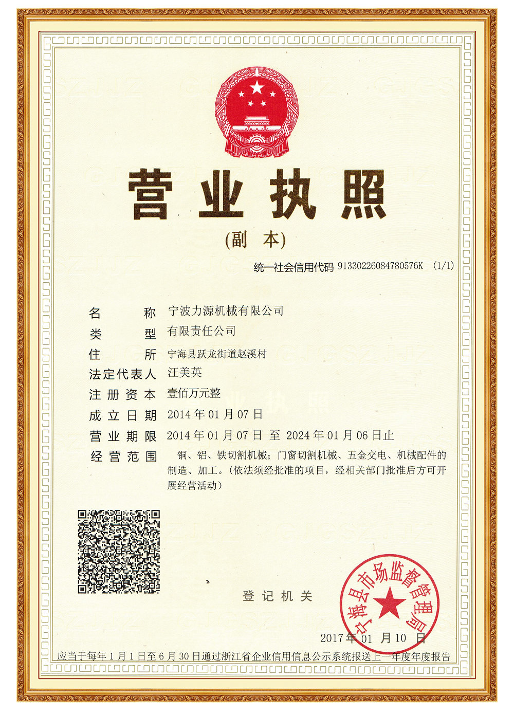 公司于2014年01月07日成立(原寧海縣力鑫機(jī)械廠(chǎng)),公司主要產(chǎn)品有半自動(dòng)銅鋁材切割集,全自動(dòng)銅鋁材切割機(jī),高端數(shù)控銅鋁材切割機(jī),集研發(fā),生產(chǎn),銷(xiāo)售一體的制造型企業(yè)