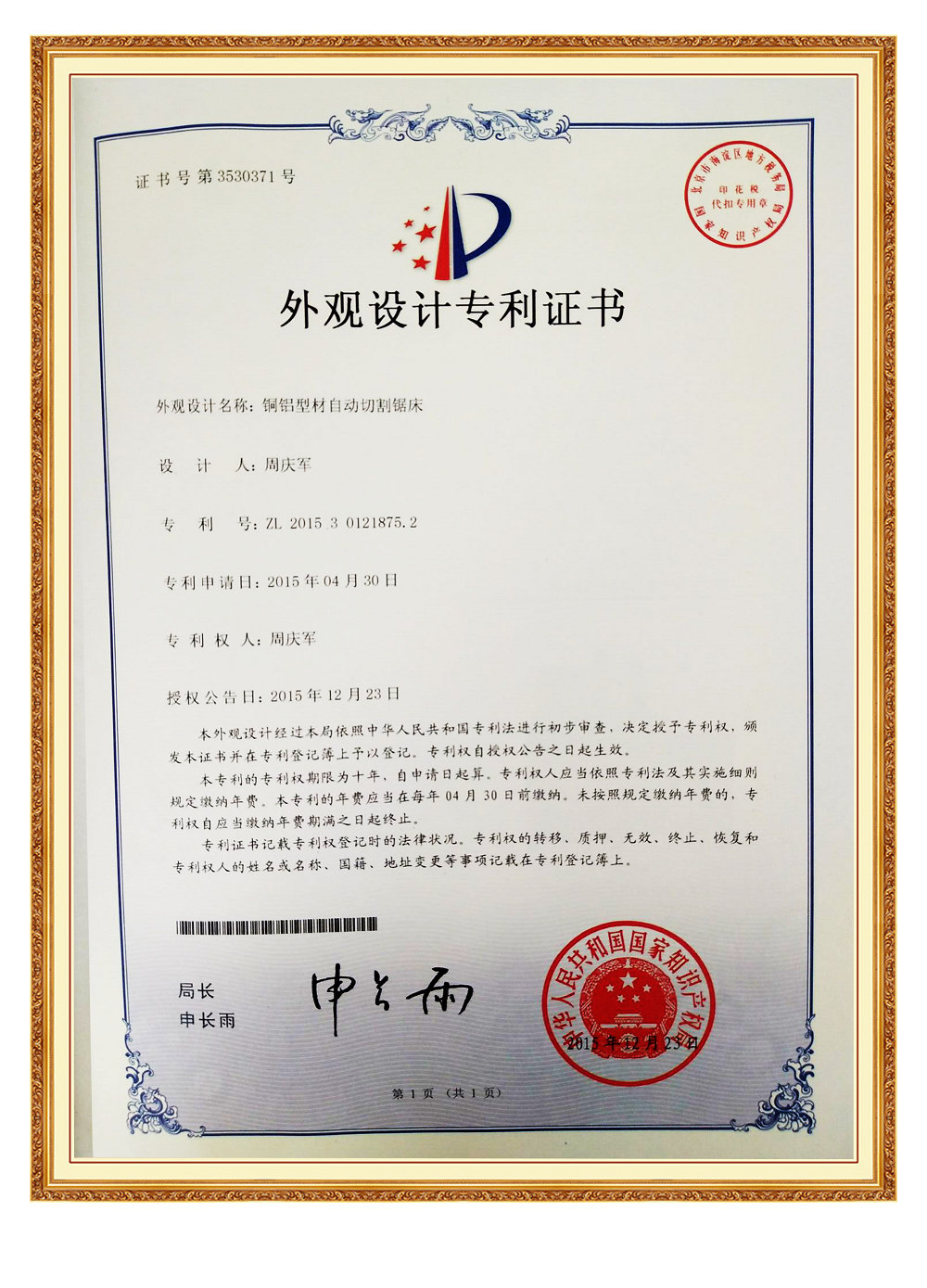 公司多款設(shè)備擁有專(zhuān)利及實(shí)用新型專(zhuān)利證書(shū),實(shí)用性有可觀(guān)的提高,新型產(chǎn)品解決了企業(yè)使用老式切割機(jī)鋸切材料效率低,安全性差,精度不達(dá)標(biāo)等問(wèn)題,有效為客戶(hù)提高了產(chǎn)能并節(jié)省了人工成本,取得了客戶(hù)一定程度的認(rèn)可